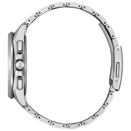 デュラテクトプラチナのケースとバンドが、荘厳で神聖な印象を醸し出します。ローマ数字とバーインデックスを組み合わせたエレガントなデザインで、二人の特別な時間を優雅に彩ります。