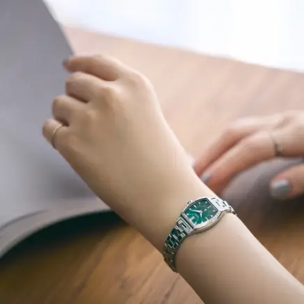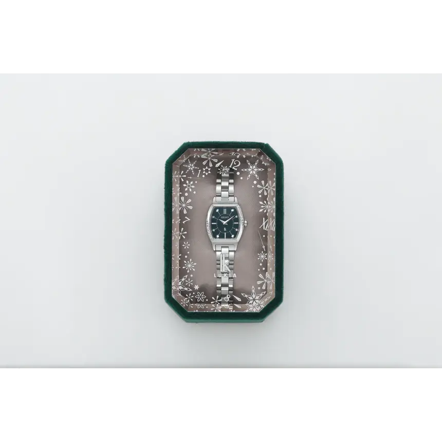 横幅21.0mm、厚さ**7.0mmと、ルキアの中でも特に小ぶりなサイズを実現。ジュエリーのような感覚で着用でき、大人のシックなホリデーシーズンに輝きを添えます。