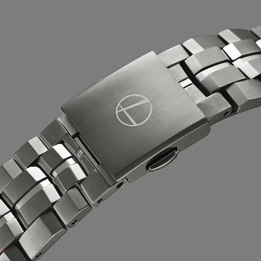 バンド:メタルバンド(チタンムクバンド)、スライドアジャスト機構付きワンプッシュ三つ折れ式中留