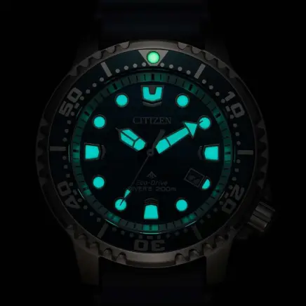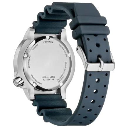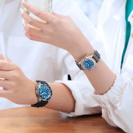 本格仕様のダイバーズウオッチ、プロマスター「MARINEシリーズ」から、清涼感あふれる特別な限定モデルが登場。文字板には、見る角度によって青緑から青紫へと表情を変える「構造色フィルム」を採用し、水深によって色が変化する澄んだ海を表現しました。ベゼルには青緑、バンドにはブルーグレーをコーディネートし、洗練されたカラーリングに。バンド素材には耐久性に優れたバイオマスウレタン「BENEBiOL™」を採用。200m潜水用防水を備えた本格スペックが、日常から過酷な海の世界までをサポートします。