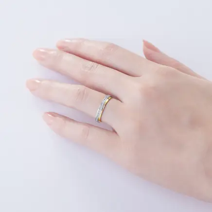 イエローゴールドの鏡面仕上げとプラチナの艶消し仕上げが、落ち着きと華やかさのあるデザインです。