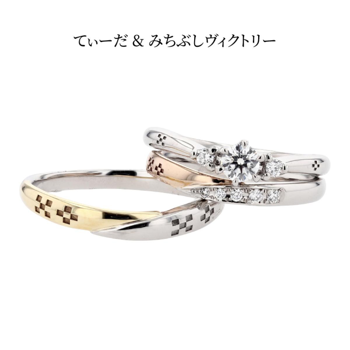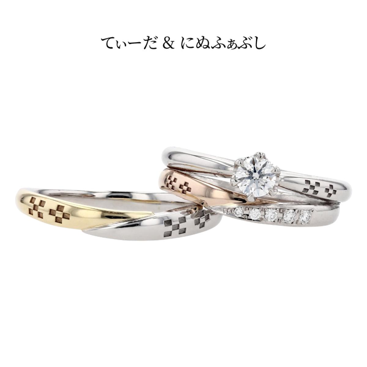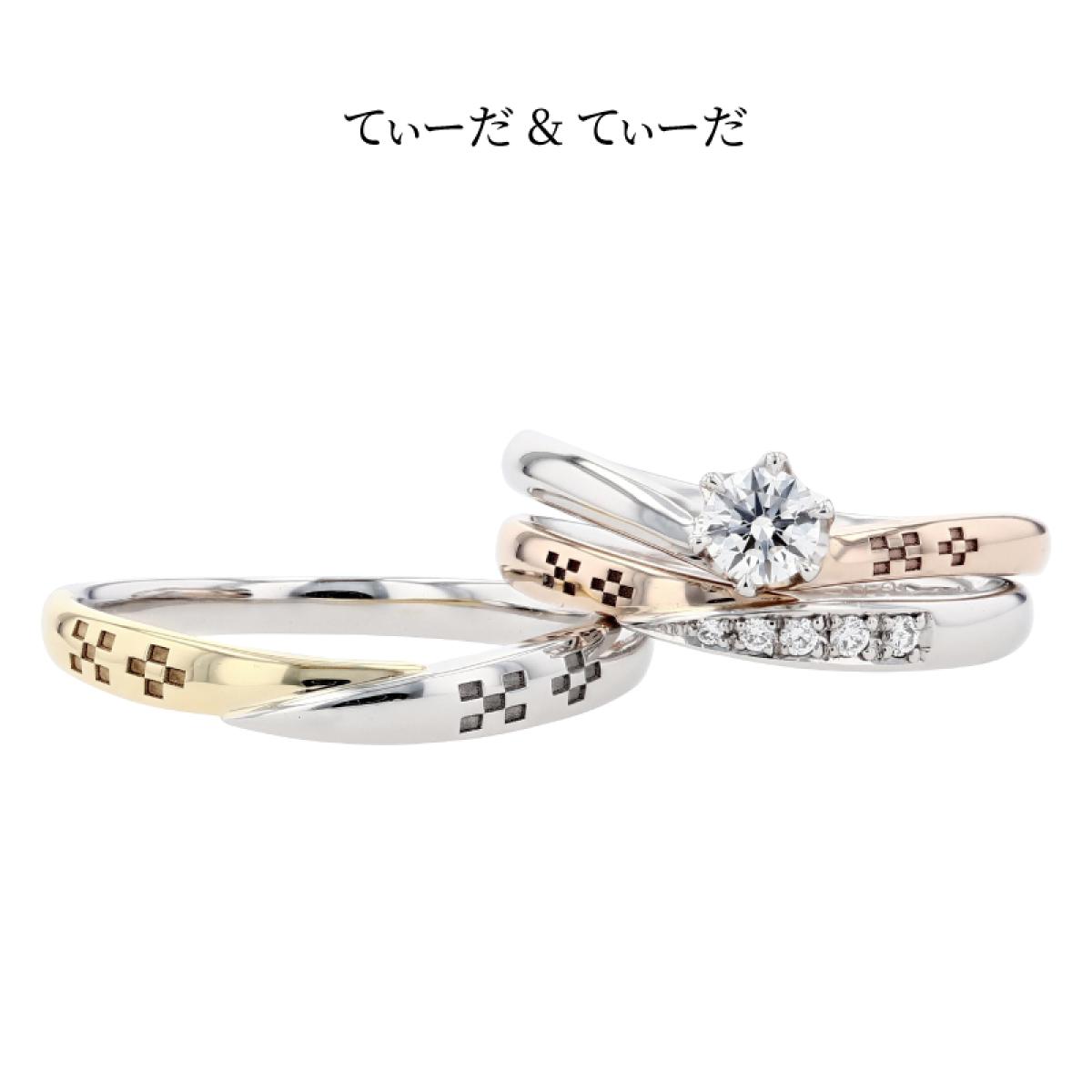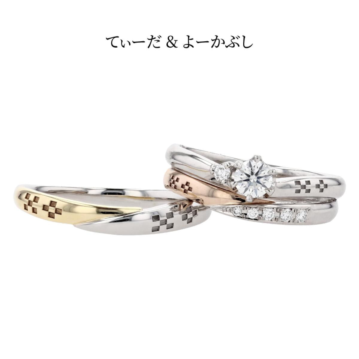 V字フォルムの結婚指輪「てぃーだ」とS字フォルムの結婚指輪「てぃーだかんかん」はシリーズ作となっており、それぞれのお好みでお選び頂いても、違和感なくペアリングにする事ができます。