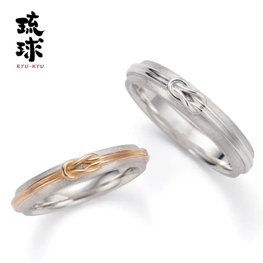 語源でもある「結い」をモチーフに、助け合い、手を取り合って生きていく、二人の未来を表しています。沖縄の方言でユイ(結い、協働)+マール(回る、順番)の意。皆で協力し合い、さとうきび畑を順番に刈り取る農作業がその由来となっています。おじいちゃん、おばあちゃんになるまで愛情深く、共に手を取り合って助け合い、末永く幸せに生きていく、おふたりの固い結びつきを結婚指輪に表現。ボリューミーなリングがお好きなカップル様におススメです。リング内側を丸く「内甲丸」にして滑らかな着け心地、また「ゆいまーる」の内側にミンサー模様を秘めました。