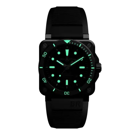 Bell & Ross のアイコンであるスクエアケースに、ダイバーズウォッチの厳格な規格を落とし込んだ「BR 03-92 DIVER」。