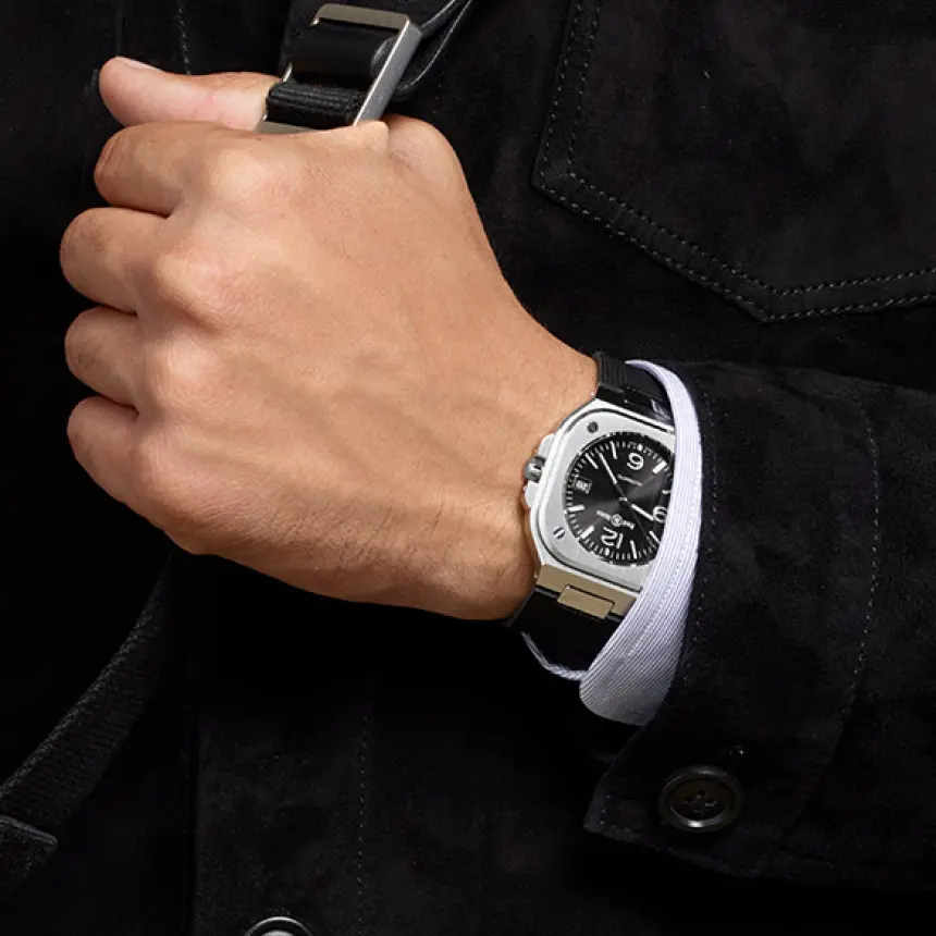 Bell & Ross のアイデンティティである「丸」と「四角」を融合させ、都市に相応しい毅然とした外観を定義した BR 05。アビエーション・ウォッチの理念である「視認性」「機能性」「信頼性」「高精度」を完璧に継承しています。