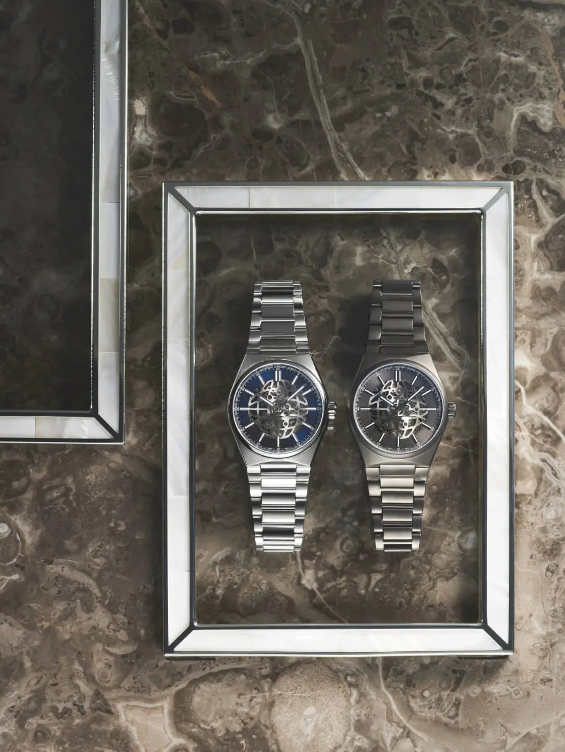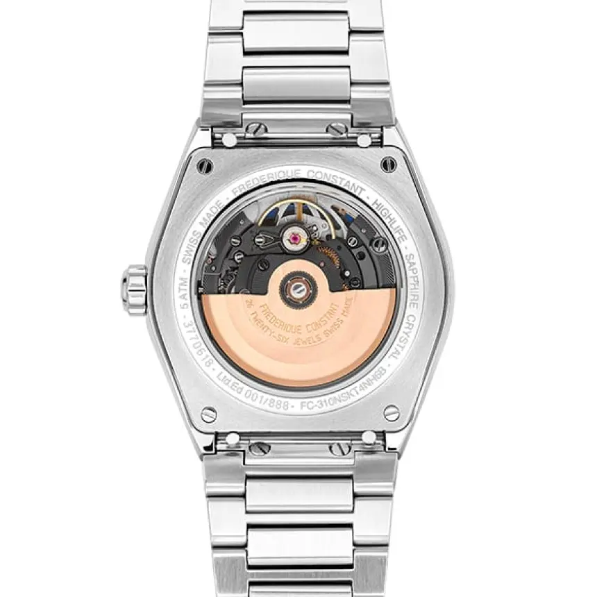 世界限定 888本ハイライフ コレクションの共通モチーフである地球をダイヤルセンターに配し、陰影のある巧緻なスケルトンに仕上げました。ムーブメントのほぼ全機構を愛でることができるようデザインし、12 時位置にはテンプ、3 時位置にはリューズ機構、4 時から6 時の間にはバレルを見ることができます。スケルトンのカッティングラインは球や調和を表すように曲線で表現。光と影、隠れた部分と露出した部分によりスケルトンワークと機械式時計が織なす趣を楽しめます。ストラップを簡単に交換できるデザインと、協調を象徴するモチーフの地球が特徴の〈新世代のタイムピース〉です。