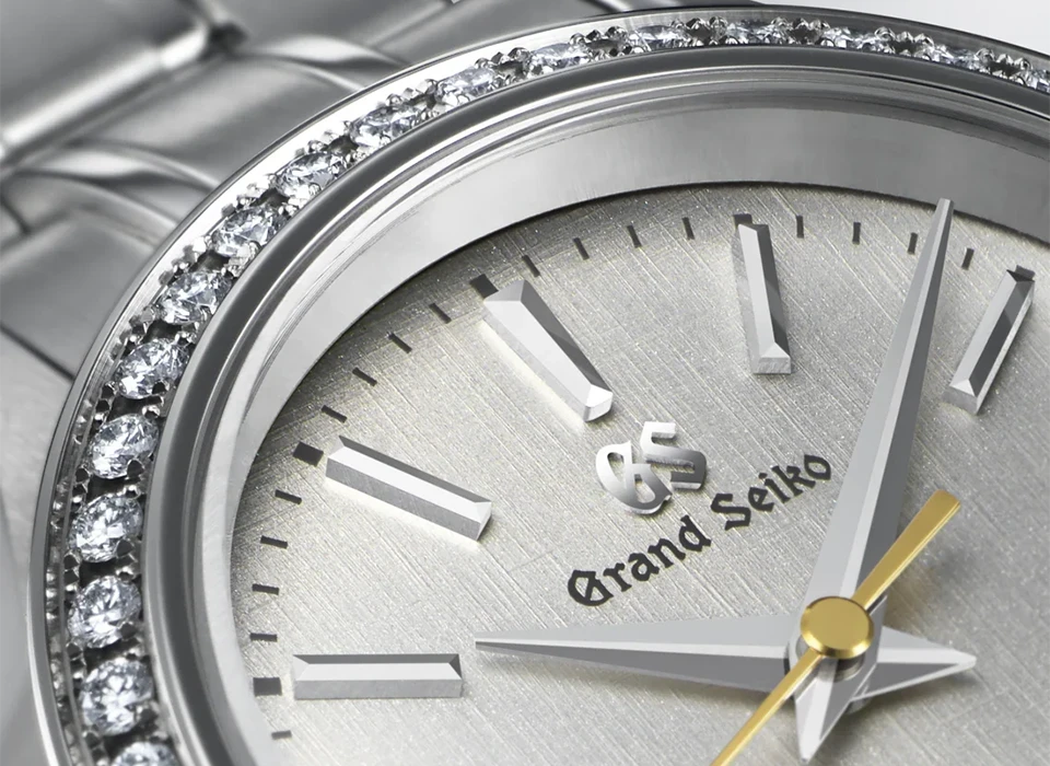 ダイヤルは、美しい絹の布のような型打模様に真珠の輝きのようなパール仕上げを施しており、ベゼルに 45 個配置されたダイヤモンドとともに腕もとで上品かつ華やかに輝きます。