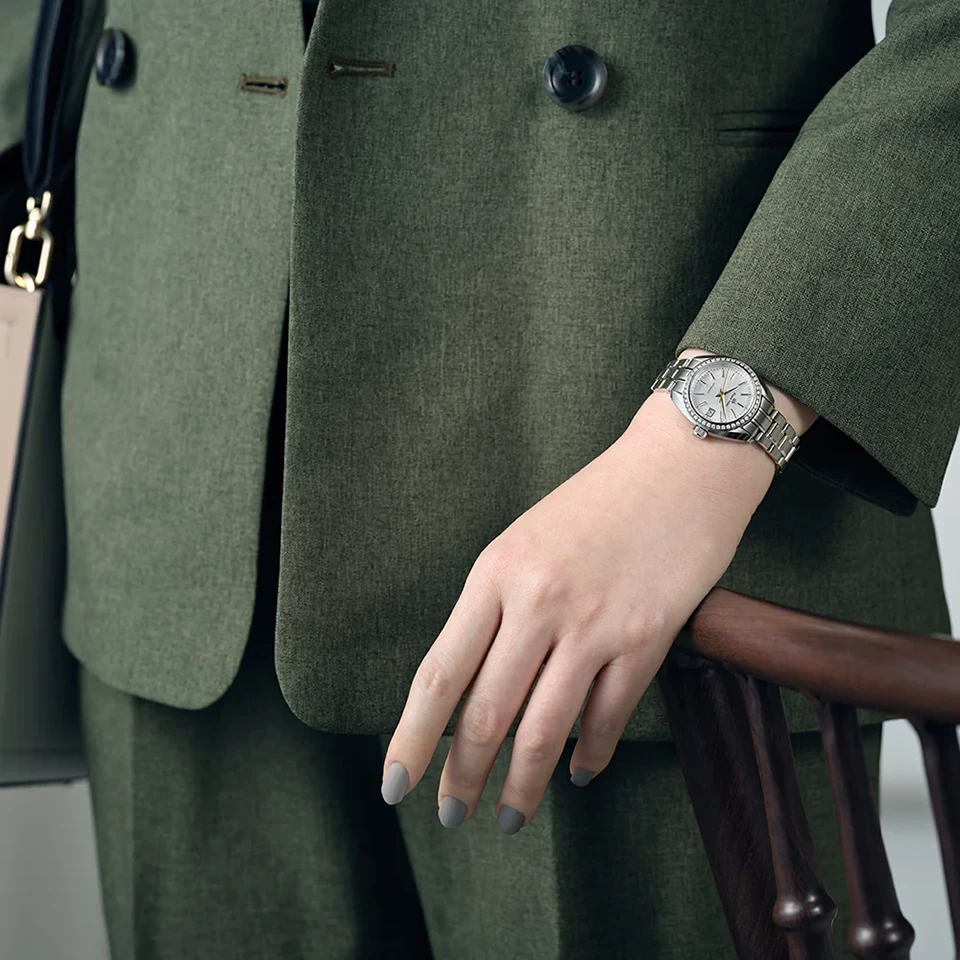 直径 27.8mm の小さなケースの中に本格的なメカニカルムーブメントを搭載した、日常で使いやすいステンレススチールモデルです。
