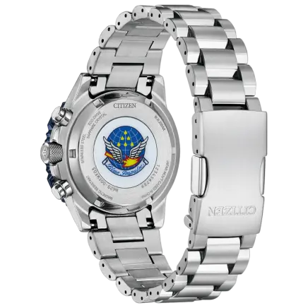 世界の果ての、そのまた先へ。世界を舞台に活躍する人のためのパイロットウオッチ。プロマスター「SKYシリーズ」。2025年に創設65周年を迎える航空自衛隊アクロバット飛行チーム「ブルーインパルス」の限定モデルです。 ケース径40mmのコンパクトなサイズで、腕が細い方にも違和感なくフィット。より多くのブルーインパルスファンの心をとらえる、使いやすい1本です。ブルーインパルスのチームカラーを想起させるブルーとシルバーの配色が、力強さと爽やかさを感じさせます。文字板と裏ぶたに、ブルーインパルスのエンブレムをレイアウト。専用ボックスの中には、ブルーインパルスの現行機種T-4の飛行シーンを印刷したカードが入っています。