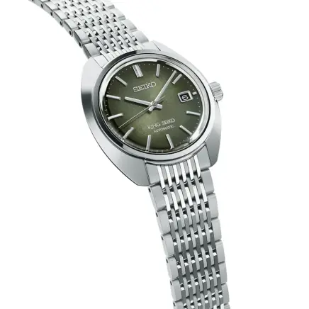 セイコーの現行機種で最も薄い自動巻ムーブメント「キャリバー6L35」を搭載し、驚異の厚さ9.9mmを実現。手首に沿う多列ブレスレットとボックス型サファイアガラスが、ヴィンテージウォッチのような趣と現代の機能性を両立させます。知的な落ち着きを放つグリーンダイヤルは、ビジネスからオフタイムまで、着ける人の個性を高貴に引き立てます。