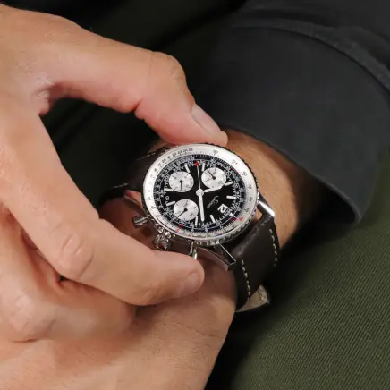 対数目盛りを備えた計算尺ベゼルは、時間、距離、燃料消費量の計算に使用可能。手作業で取り付けられたインデックスや針には、極めて高い輝度を誇る「ハイブリッド・セラミック」の夜光塗料を採用しています。インナーベゼルは時計の外径からスムーズな操作が可能で、この構造でありながら20気圧という高い防水性と減圧耐性を実現。約60時間のパワーリザーブを備えたコラムホイール・クロノグラフを搭載し、技術的にも比類ないレベルに達したタイムピースです。