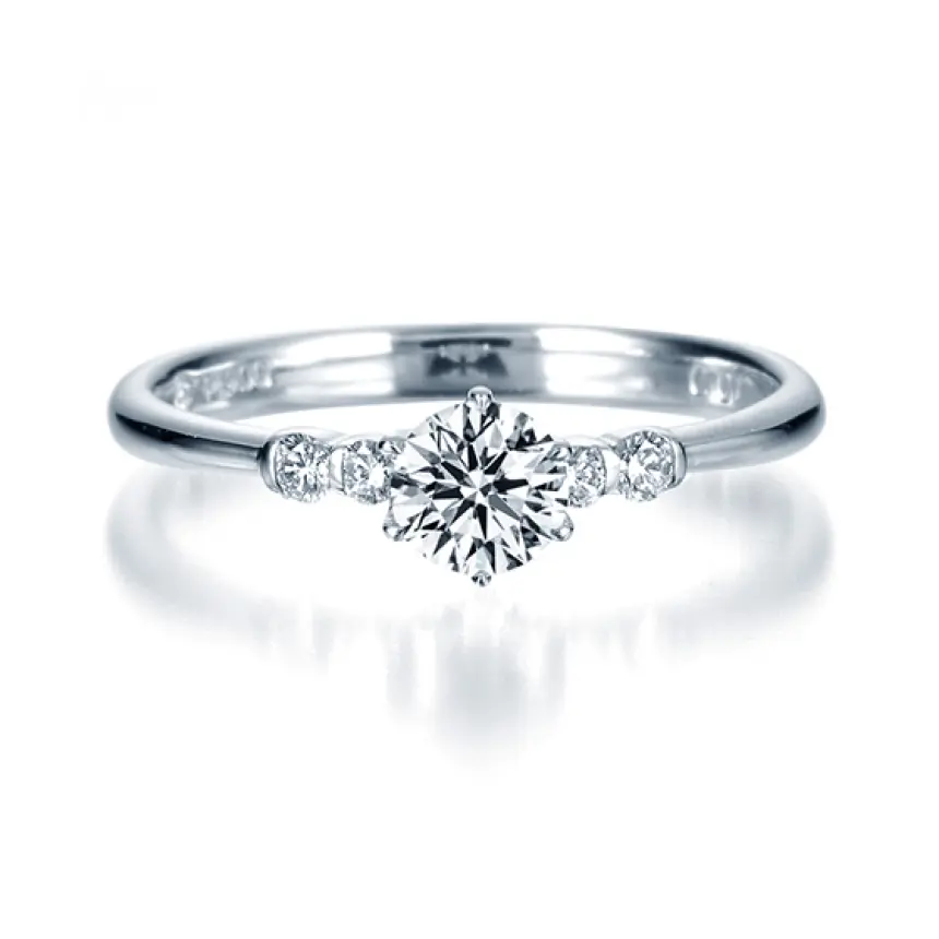 センターダイヤモンドの脇に2石ずつメレダイヤモンドを配置した、可憐な輝きが魅力の「11EN18」。