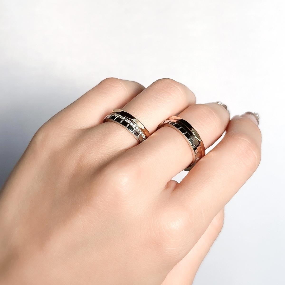 プラチナ、イエローゴールド、ピンクゴールドの3つの素材が織りなす、芸術的なトリカラー・マリッジリング。1本で重ね着けをしているかのような圧倒的なボリューム感と存在感が魅力です。