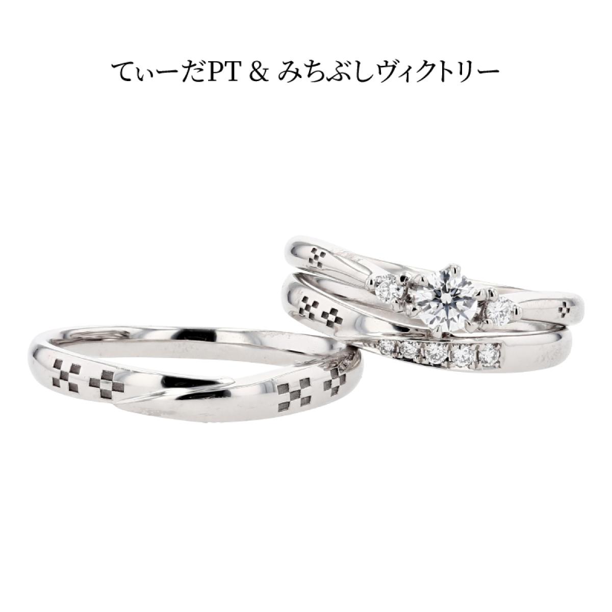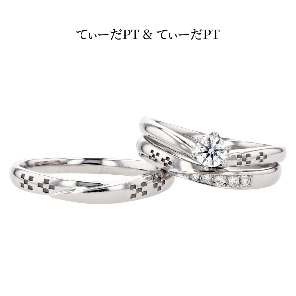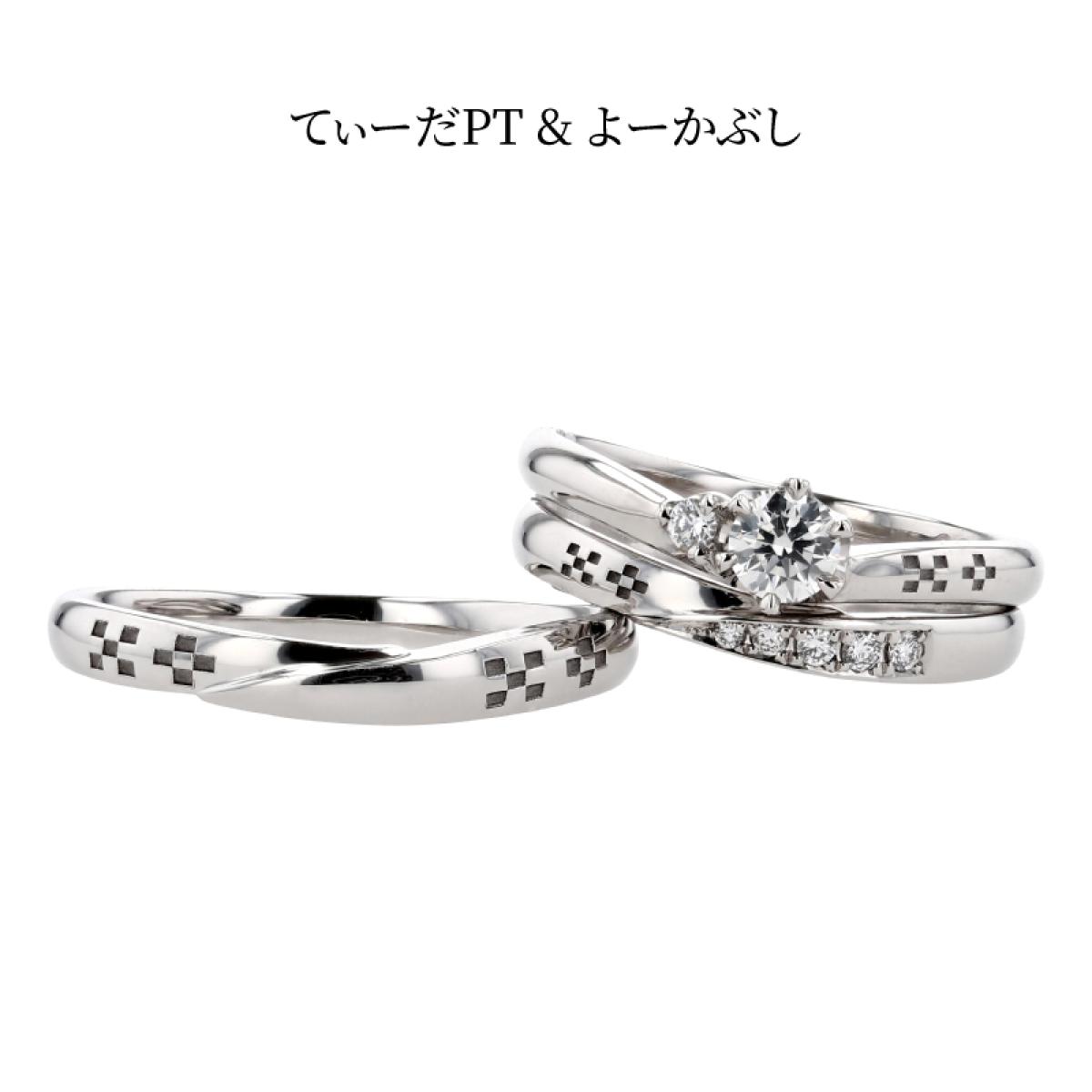 V字フォルムの結婚指輪「てぃーだ」とS字フォルムの結婚指輪「てぃーだかんかん」はシリーズ作となっており、それぞれのお好みでお選び頂いても、違和感なくペアリングにする事ができます。
