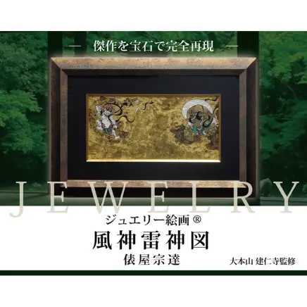 通常の絵画は紫外線による変色が避けられませんが、天然石を用いることで「50年、100年と色あせない輝き」を実現しました。俵屋宗達の晩年の最高傑作とされる『風神雷神図』。その躍動感あふれる美しさを、永遠の輝きを放つ天然宝石で再現した至高の逸品です。