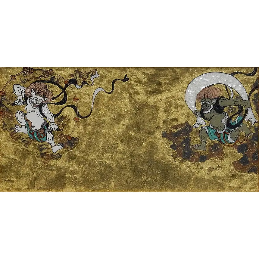 俵屋宗達の晩年の最高傑作。金箔を背景に、躍動感あふれる風神と雷神が描かれています。