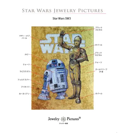 通常の絵画は熱や紫外線に弱く、変色が悩みの種でしたが、ジュエリー絵画は天然石を用いるため、色褪せしにくいのが特徴です。まさに、時を経ても輝きを失わない不朽の名作『スター・ウォーズ』にふさわしい仕上がり。