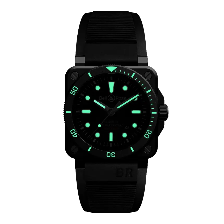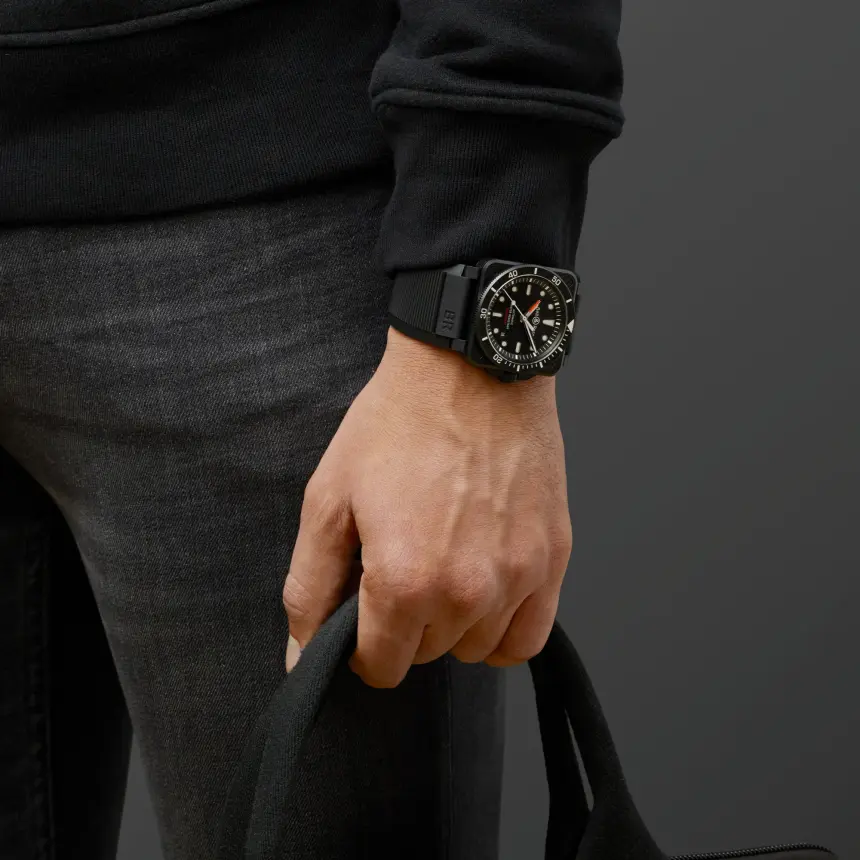 Bell & Ross のアイコンであるスクエアケースに、ダイバーズウォッチの厳格な規格を落とし込んだ「BR 03-92 DIVER」。