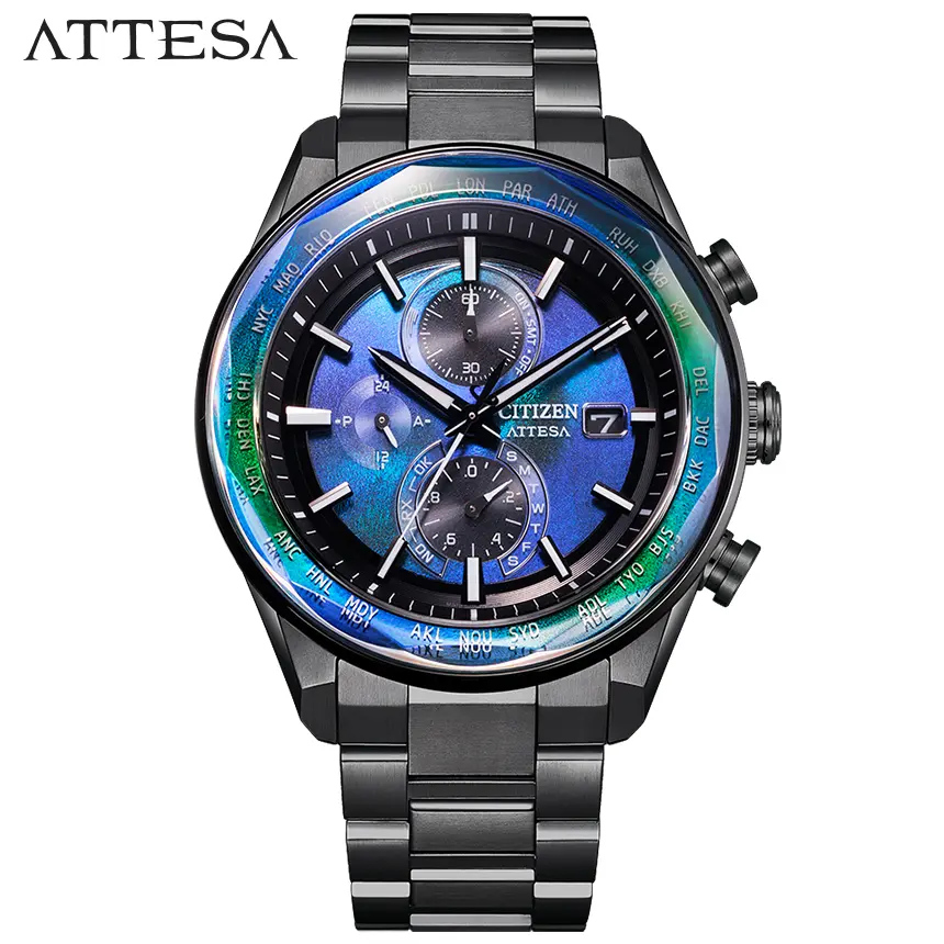 風防のサファイアガラスがベゼル部分まで覆いつくす特殊な構造を開発したことで、文字板だけでなくベゼル部分にも構造色フィルムを使用することが可能になったモデルが登場。