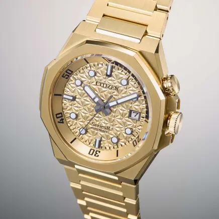 “華やぐ都市の夜のきらめき”をイメージ。明るいライトゴールドのケースとバンド、幾何学的パターンをあしらった文字板が、無数に輝くビルの灯りを表現しています。都会の二面性を表現した、シンプルながらも存在感あふれる限定モデルです。