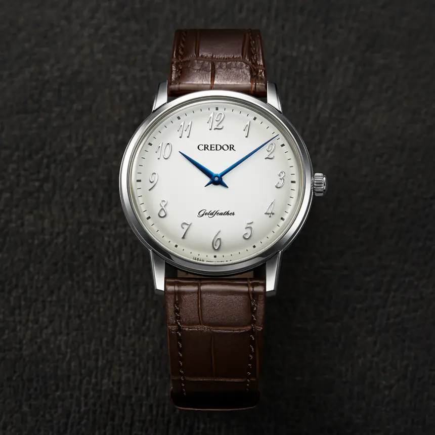 「薄型ドレスウオッチを現代に継承する」ことを使命とするゴールドフェザーに合うように、1980 年クレドール初のアラビアダイヤルとして生まれたフォントを採用。