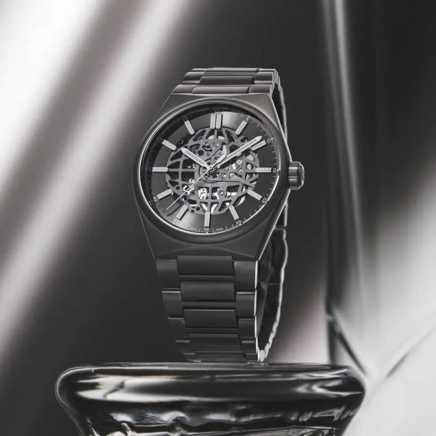 世界限定 888本ハイライフ コレクションの共通モチーフである地球をダイヤルセンターに配し、陰影のある巧緻なスケルトンに仕上げました。ムーブメントのほぼ全機構を愛でることができるようデザインし、12 時位置にはテンプ、3 時位置にはリューズ機構、4 時から6 時の間にはバレルを見ることができます。スケルトンのカッティングラインは球や調和を表すように曲線で表現。光と影、隠れた部分と露出した部分によりスケルトンワークと機械式時計が織なす趣を楽しめます。ストラップを簡単に交換できるデザインと、協調を象徴するモチーフの地球が特徴の〈新世代のタイムピース〉です。