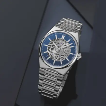 世界限定 888本ハイライフ コレクションの共通モチーフである地球をダイヤルセンターに配し、陰影のある巧緻なスケルトンに仕上げました。ムーブメントのほぼ全機構を愛でることができるようデザインし、12 時位置にはテンプ、3 時位置にはリューズ機構、4 時から6 時の間にはバレルを見ることができます。スケルトンのカッティングラインは球や調和を表すように曲線で表現。光と影、隠れた部分と露出した部分によりスケルトンワークと機械式時計が織なす趣を楽しめます。ストラップを簡単に交換できるデザインと、協調を象徴するモチーフの地球が特徴の〈新世代のタイムピース〉です。