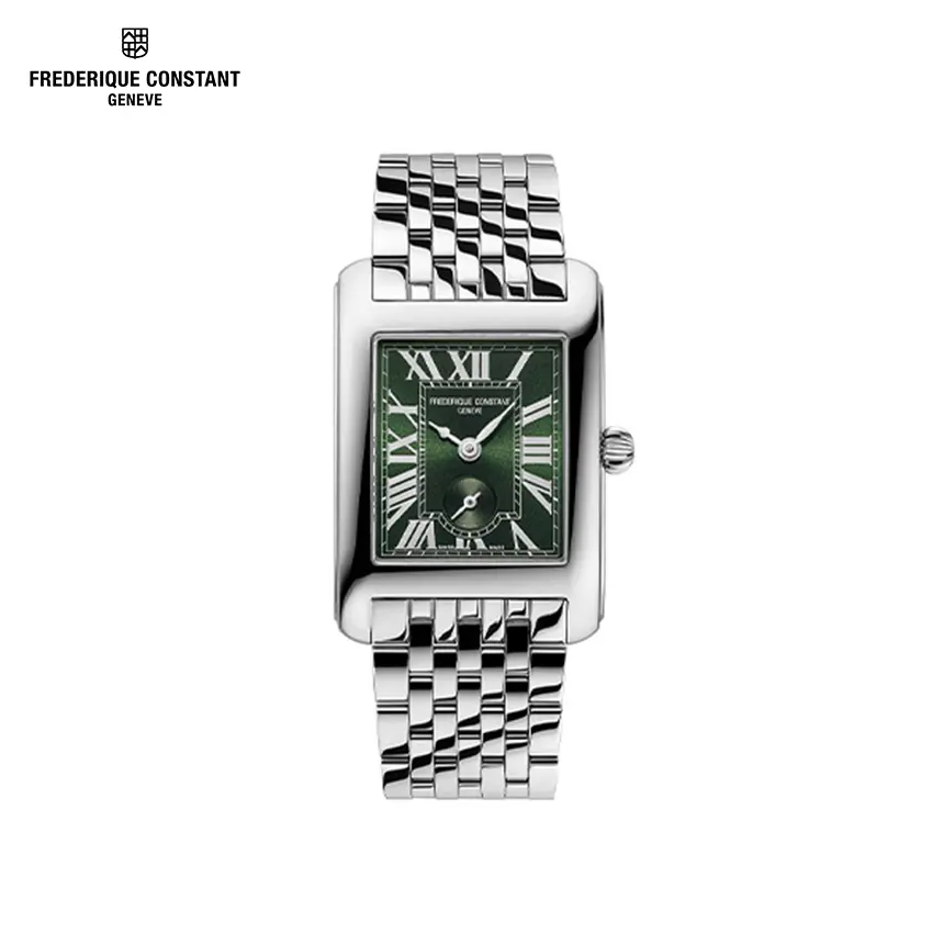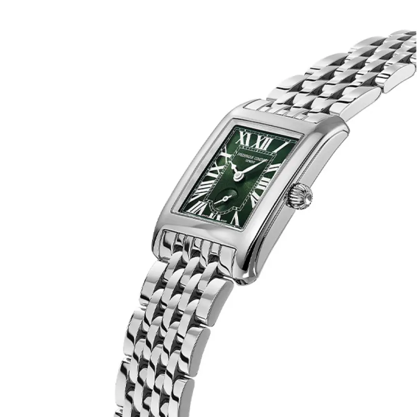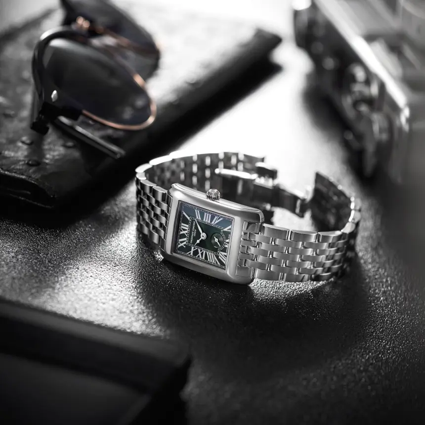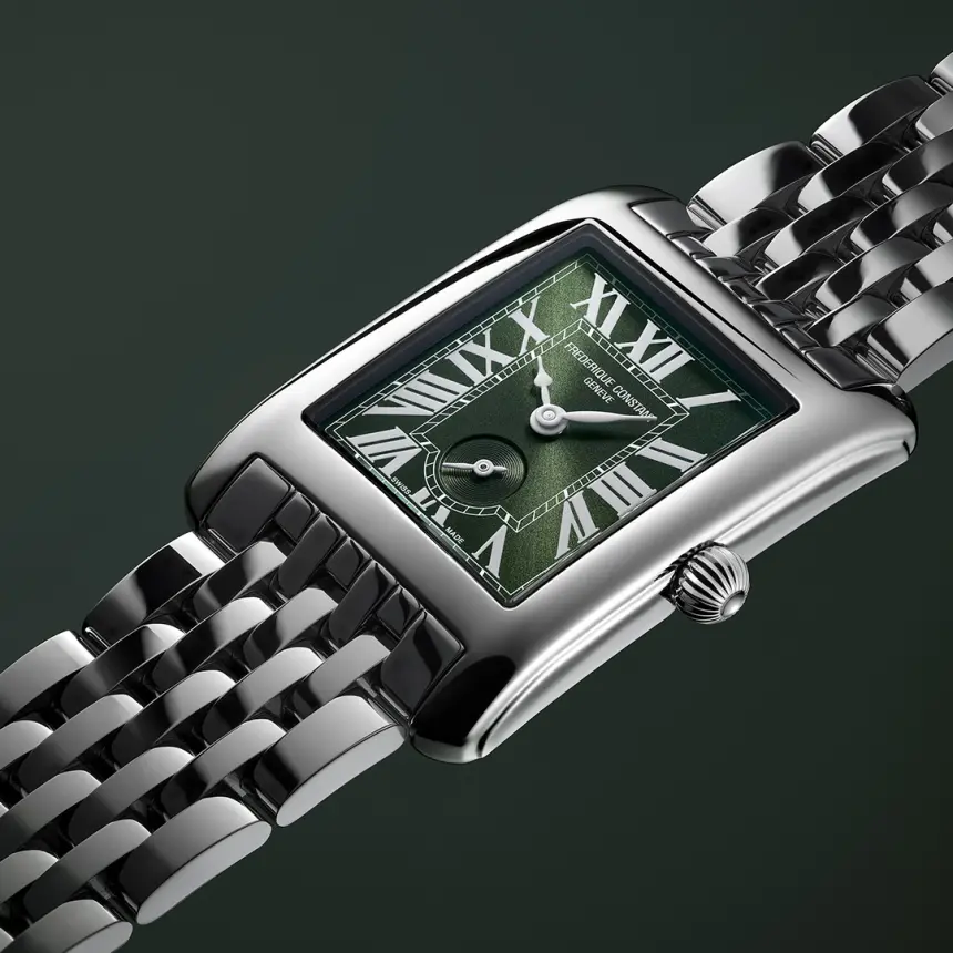 フランス語でスクエアを意味する“カレ”コレクションに、24年秋、仲間入りしたスモールセコンドを搭載した「クラシック カレ スモールセコンド」。サイズがトレンドの小径、ノンジェンダーのミドルサイズとなり、使い勝手のよさで人気です。25年夏、グリーンダイヤルが登場。7連のしなやかなブレスレットは腕になじみ快適な着け心地です。