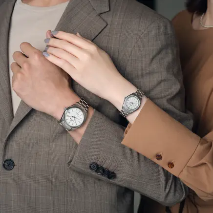 ケースとブレスレットには、ステンレスより約30%軽量で耐傷性・耐食性に優れるブライトチタンを採用.軽快で心地よい装着感とともに、知的な品格を腕元に添えます。