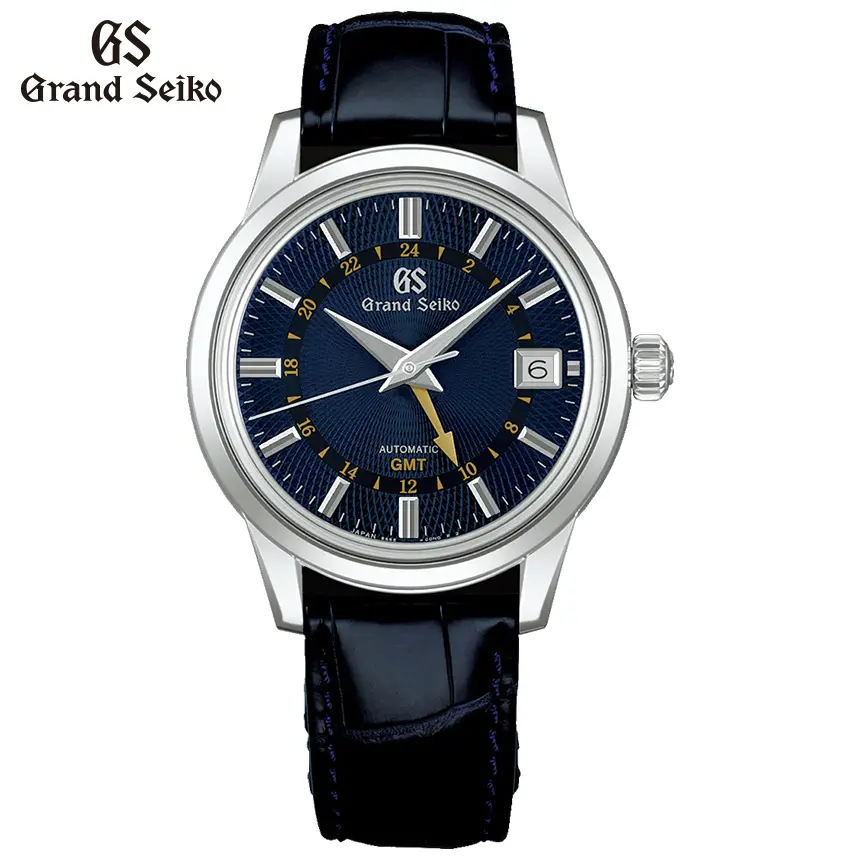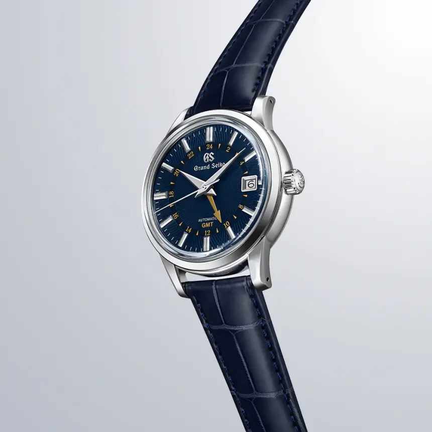 ゴールドカラーの24時針やGMTのレタリングが、全体のクラシックスタイルに上品な調和をもたらします。ボックス型サファイアガラスと優美なケースサイドの仕上げが、グランドセイコーの持つ格式高いエレガンスを演出します。