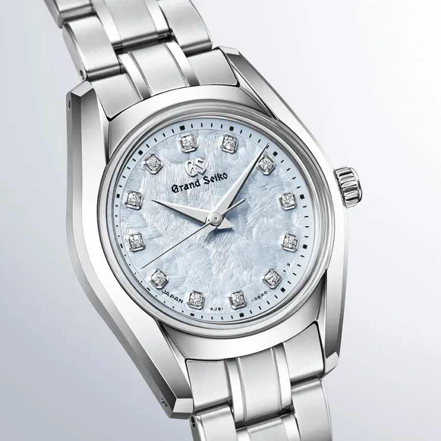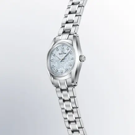 桜とともに光り輝く春の柔らかな風を表現した季語「風光る」をイメージしたスモールサイズのクオーツモデル。1967年発売のグランドセイコー史上初の自動巻機械式モデル「62GS」を現代的にアレンジした「62GS現代デザインモデル」をベースとし、日本特有の季節の移ろいをダイヤルで表現したモデルです。ベゼル(ガラス縁)のない構造によって広々と見えるダイヤルや、ザラツ研磨によって実現したシャープな多面体からなるケースが魅力です。ダイヤルは、桜の咲き渡る春の陽光の中を、爽やかな風が花びらを揺らし、きらめきながら吹きわたる情景を表現。ムーブメントは、年差±10秒のクオーツ「キャリバー4J51」を採用しました。