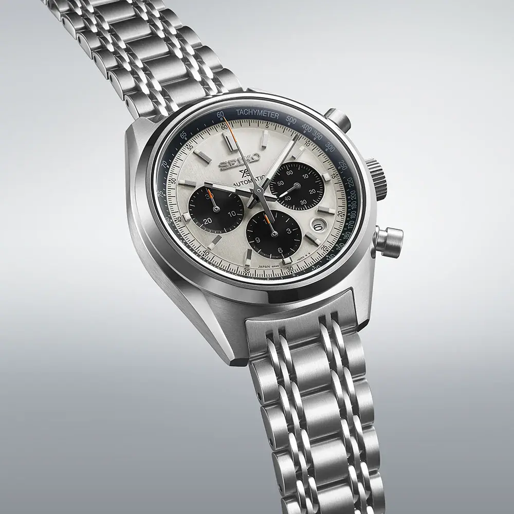 本作は、1972年に発売して今なお当時のデザインが高い評価を得ている、「キャリバー6138」を搭載したクロノグラフをデザインソースにしています。その流線形のケースや、エレガントなブレスレット、時分針とストップウオッチ針を見分けやすいツートーンのダイヤル、先端がオレンジ色のストップウオッチ針などを受け継ぎました。ケースやブレスレットには最新の技術を取り入れることで、加工精度の高い、より美しい造形を実現しています。ケースには、クラシカルな円状のヘアライン仕上げを施しました。ブレスレットは、しなやかに動く細かいピッチのこまで構成しており、エレガントなデザインでありながらもケースの重量をしっかりと支える、腕なじみの良い構造です。
