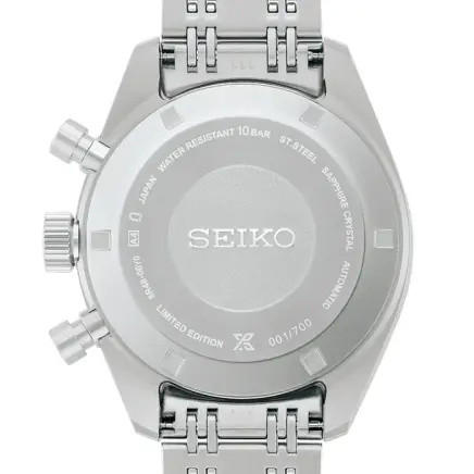 ムーブメントには、セイコーが培ってきたクロノグラフ技術の粋を集めた「8R48」を搭載。垂直クラッチやピラーホイールを採用し、確実な操作感と高い計測精度を実現しています。シースルーバックの裏蓋からは、精緻な鼓動を視認することができます。