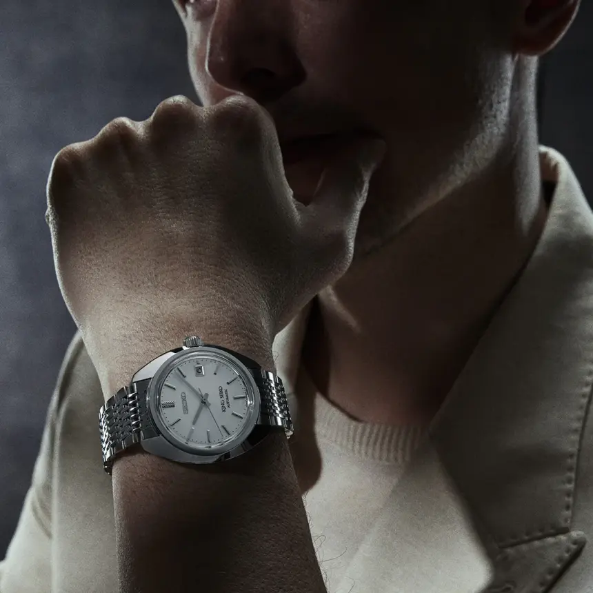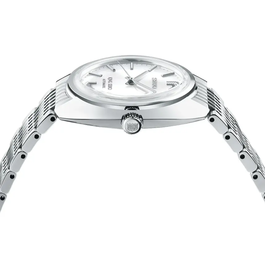 1969年に誕生し、キングセイコーのデザインの方向性を決定づけたアイコニックなモデルが、現代の技術により美しく進化を遂げました。シルバーダイヤルには、キングセイコー生誕の地である「東京」の現代的な街並みから着想を得た、新しい型打ち模様を施しています。