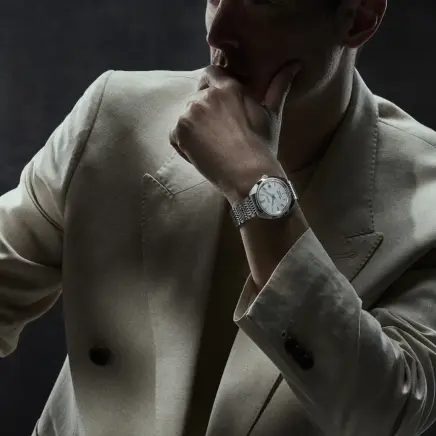 自動巻ムーブメントでありながら、厚さをわずか9.9mmに抑えた極薄設計。ボックス型サファイアガラスと、手首にしなやかに馴染む多列ブレスレットが、ヴィンテージの風合いと現代の快適さを両立させています。都会的で洗練されたシルバーの質感は、ビジネスからフォーマルまで、あらゆるシーンで揺るぎない品格を添えます。