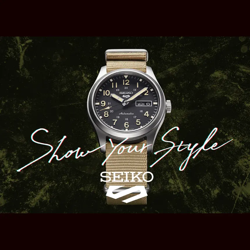 タフで機能的な「フィールドスタイル」。質感の高いダイヤルとナイロンバンドの組み合わせが、日常からアクティブなシーンまで幅広く対応します。シースルーバックから覗くメカニカルムーブメントの鼓動も魅力の一台です。