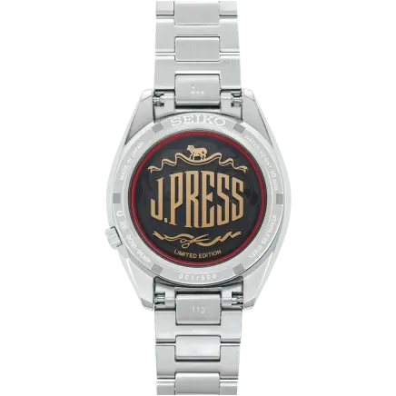 裏ぶたにはJ.PRESSのロゴと、限定モデルの証である「LIMITED EDITION」の文字、シリアルナンバーを刻印。クロコダイル調の型押しレザーストラップとスペシャルボックスが付属する、まさに特別仕様の一本です。