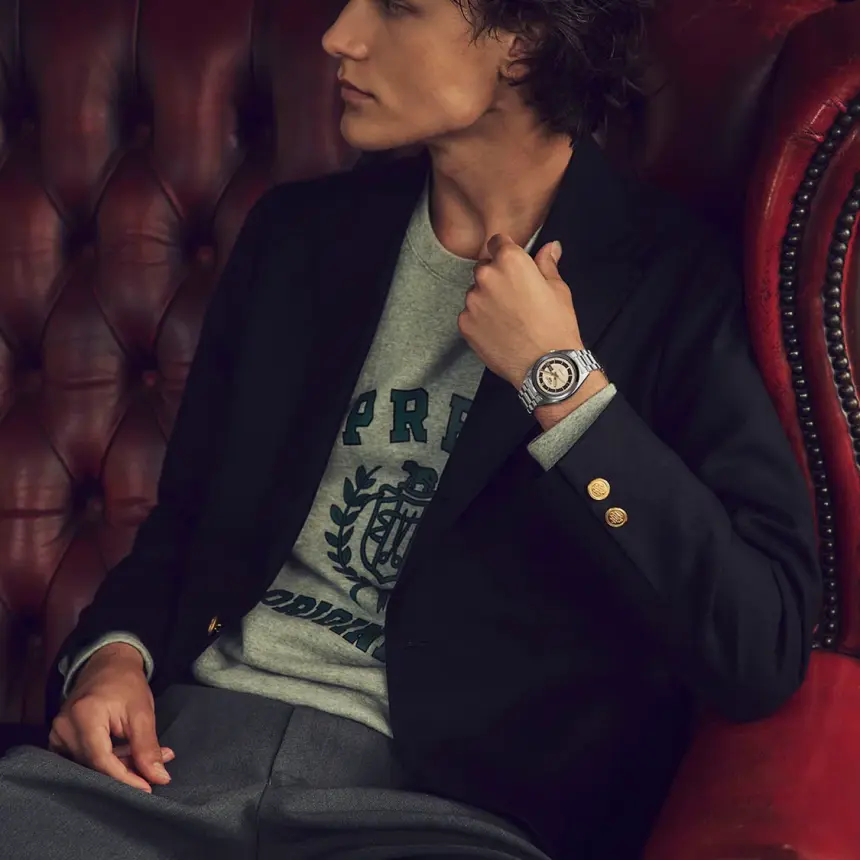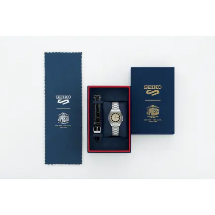 アメリカントラディショナルをベースとしたファッションブランド「J.PRESS」とのコラボレーション限定モデルが登場。ゴールドカラーをアクセントとしたクラシカルなデザインは、ネイビーのブレザーをはじめとするトラッドスタイルに気品を添えます。