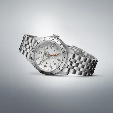 本作は、アウトドアレジャーから日常使いまで、幅広いシーンで活躍するFieldシリーズを質感と機能の両面で進化させたモデルです。搭載されるメカニカルムーブメント「キャリバー4R34」はGMT機能を備え、時差のある2つのタイムゾーンの時刻を表示することが可能です。