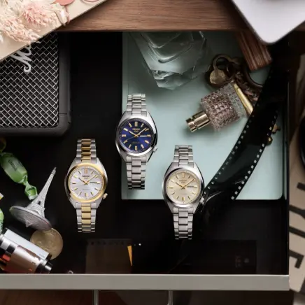 世界中から愛されたヘリテージモデルを現代的に進化させた“SNXS”シリーズ。32mm径のコンパクトなケースに、深みのあるダイヤルカラーがマッチし、日常の装いに落ち着いた高級感を添えてくれます。