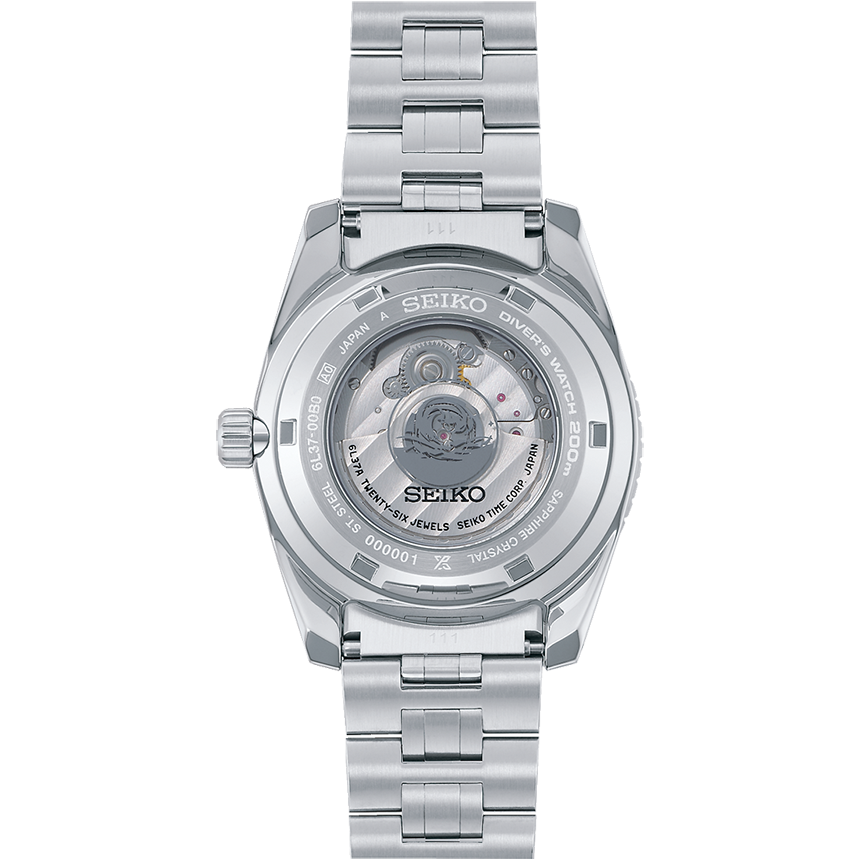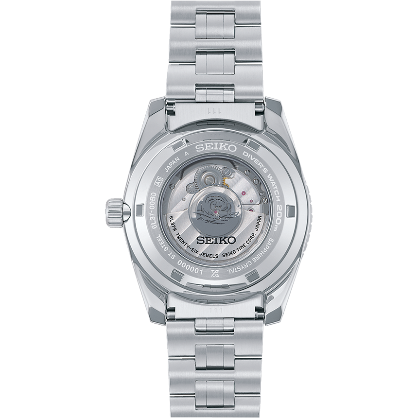 なお、裏ぶたを、高い防水性や耐衝撃性を伴ってシースルーバック仕様にすることは困難であり、ケースの厚みも増す要因になりますが、本作では、ダイバーズウオッチ用に開発した薄型で耐衝撃性の高い「キャリバー6L37」を搭載することで、セイコーの現行メカニカルダイバーズウオッチとして最薄の12.3mmを実現。セイコーのダイバーズウオッチで初めてシースルーバック仕様とすることで、精巧に仕上げられた機械式ムーブメントの力強い動きを眺め、楽しむことができます。