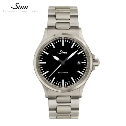 航空機のコックピットクロック由来の読み取りやすく落ち着いた艶のある**ブラックダイヤル**と、ソリッド感の高いサテン仕上げのステンレススチールケースを備えた556シリーズの基本モデルです。時・分・秒と日付表示のみに特化したシンプルなデザインで、防磁性、防水性といった**DIN規格(ドイツ工業規格)**に基づき製作されています。