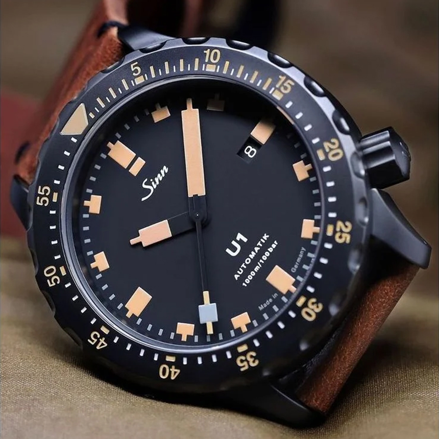 ジンのダイバーズウォッチの中でも最も人気の高いU1に誕生した、ケースとリューズにブラック・ハード・コーティングを採用し、針やインデックスにアクセントとなるアイボリーカラー仕上げを施したオールブラックのダイバーズウォッチです。