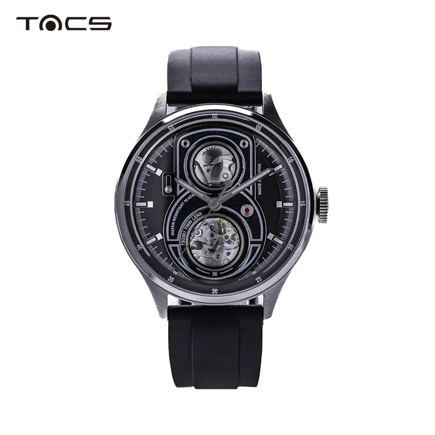 二眼レフカメラを彷彿とさせるツインレンズデザインを踏襲しながら、わずか87gという軽量設計を実現。日本製ムーブメントの搭載だけでなく、組み立ても日本国内で行う「完全なる日本製」へのこだわりが、長時間の装着でも負担を感じさせない快適な着け心地を叶えています。
