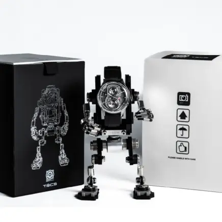 本モデルには、韓国の職人が一つずつ手作業で仕上げたロボットウォッチスタンドが付属します。ただ時計を飾るだけでなく、デスクの上で一つのストーリーを語り出すような存在感。デザイン、クラフト、そしてストーリーが融合した、プロダクトとしての完成極致がここにあります。