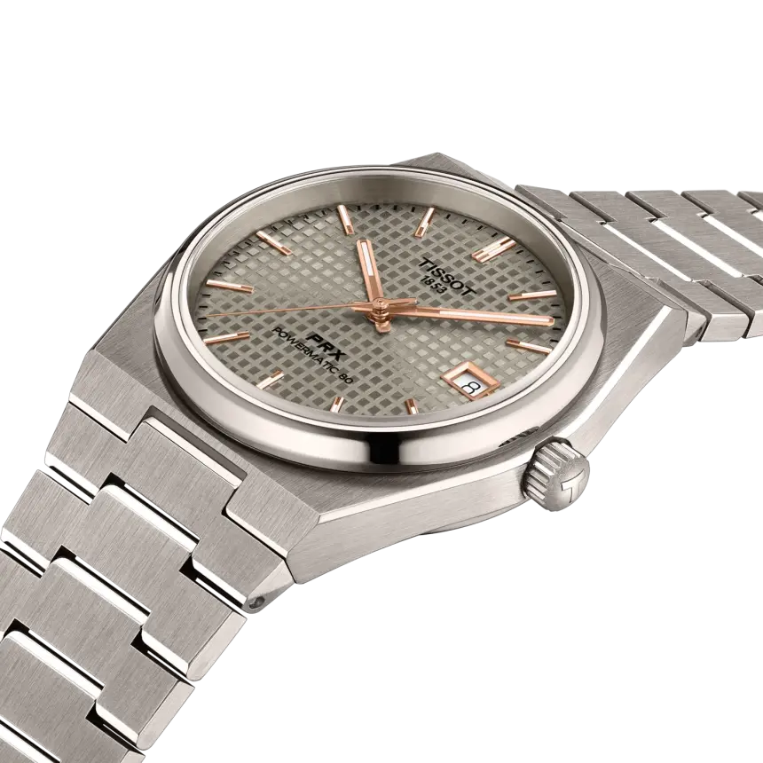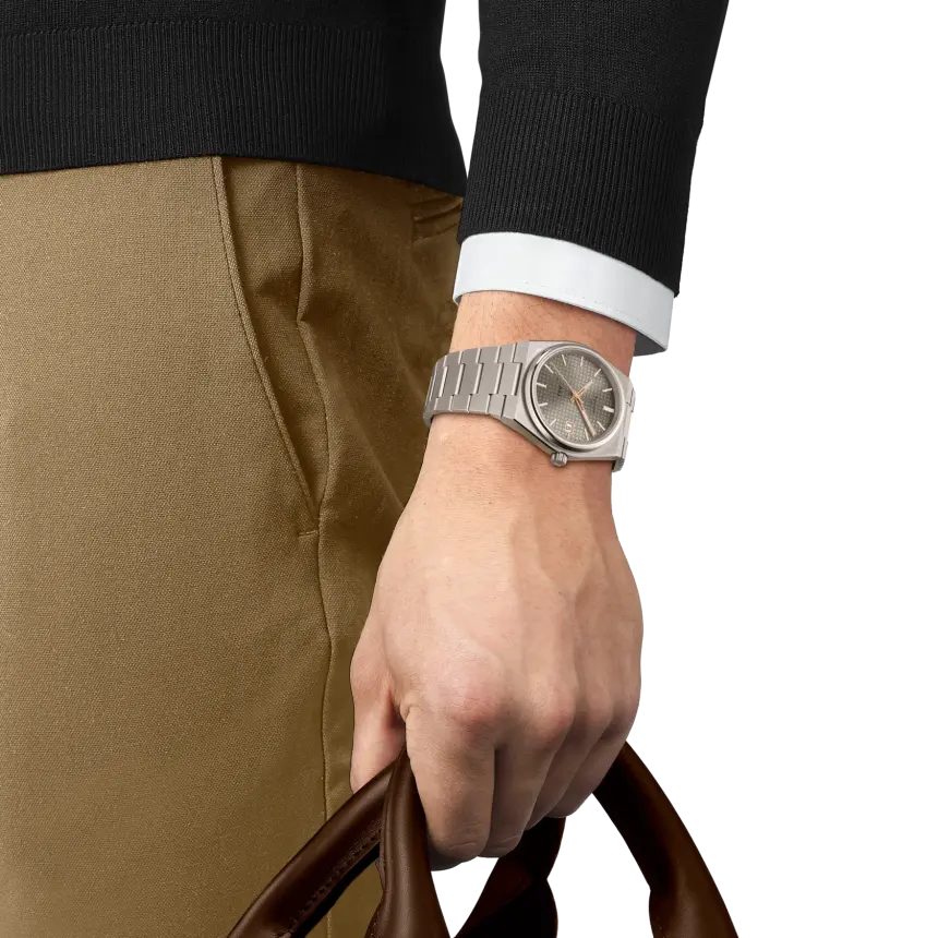 1978年のオリジナルデザインを現代に蘇らせ、世界中で熱狂的な支持を受ける「PRX」コレクション。本作は、待望の38mmケースに軽量かつ強靭な「チタン」を採用した革新的なモデルです。