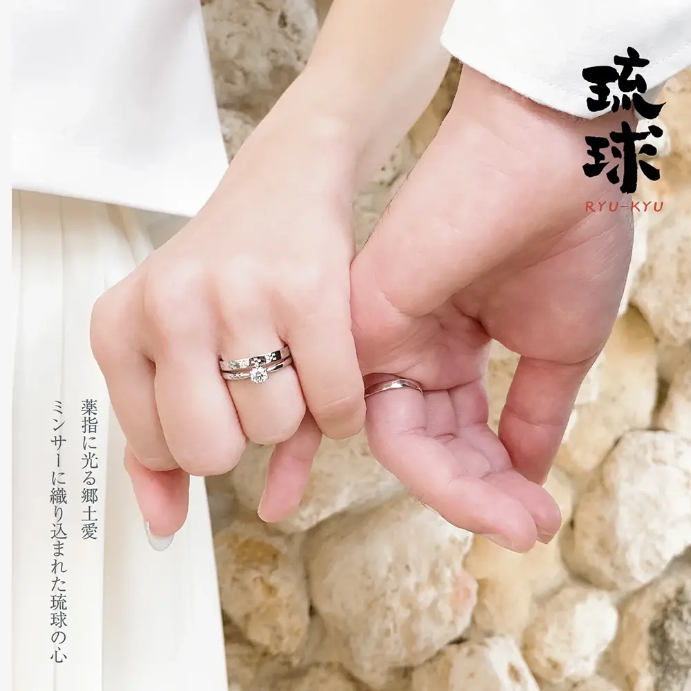 リゾートウェディングの島・沖縄に伝わる数々の物語や黄金言葉(くがにくとぅば)、風物詩をテーマにしたミンサー指輪「琉球」。