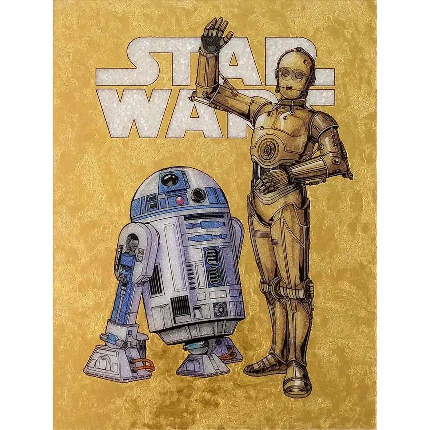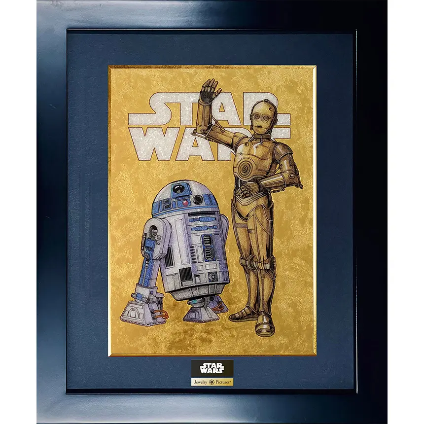 通常の絵画は熱や紫外線に弱く、変色が悩みの種でしたが、ジュエリー絵画は天然石を用いるため、色褪せしにくいのが特徴です。まさに、時を経ても輝きを失わない不朽の名作『スター・ウォーズ』にふさわしい仕上がり。