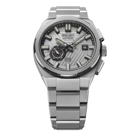 異なる金属を組み合わせた二層構造のベゼルが特徴です。エッジのきいたケース・ブレスレット・ダイヤルをシルバーカラーのワントーンで統一し、メタリックな宇宙船内の雰囲気を演出しています。