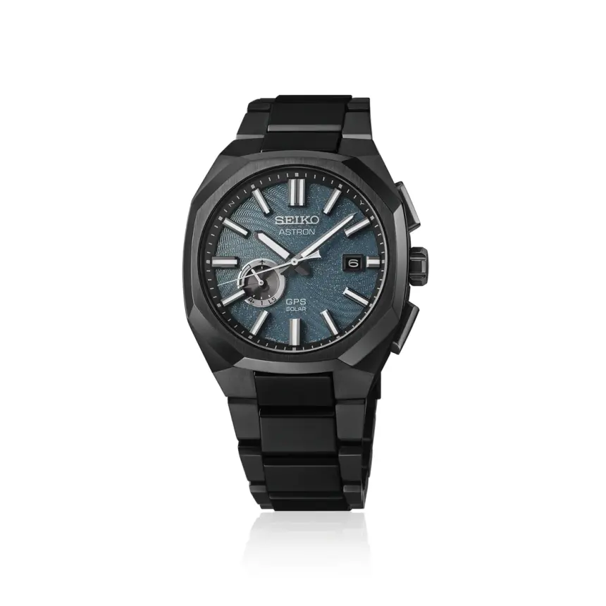 ダイヤルには新たに開発した「スパイラルパターン」の型打ち模様を施し、宇宙の中で渦巻く銀河のエネルギーを表現。漆黒のオールブラックカラーと、ダークターコイズをベースとしたラメ入りダイヤルが、神秘的なコントラストを生み出します。